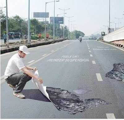 Cuando pasan los automóviles por aquí casi paran completamente para poder esquivar o pasar estos hoyos y no averiarlo. ¡Cuidado!